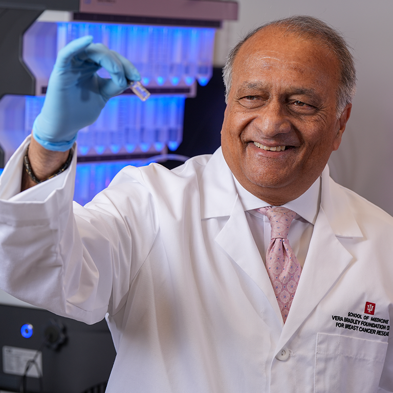Pravin Kaumaya, PhD, is in his new role as the Vera Bradley Foundation Professor of Breast Cancer Innovation and director of the Immuno-Oncology and Vaccine Immunotherapy laboratory at the Brown Center for Immunotherapy, and a member of the Experimental and Development Therapeutics (EDT) and the Hematopoiesis and Hematologic Malignancies (HHM) research programs at the IU Simon Comprehensive Cancer Center.